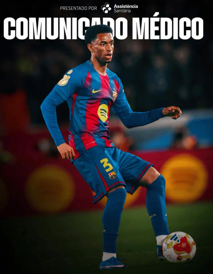 巴塞罗那足球俱乐部官方宣布,巴尔德左大腿远端股二头肌受伤,医疗测试确定其恢复过程大约需要4周的时间。孔德左大腿股二头肌中段受伤,具体的复出时间将取决于他的后续恢复进展。